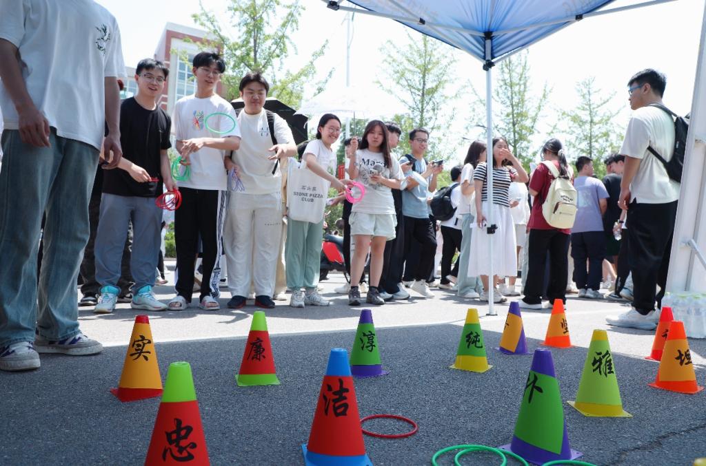 此次活动创新推出三大沉浸式体验游戏,将游戏与廉洁元素结合,吸引众多师生热情参与。参加者在“廉廉圈圈乐”中精准投掷圈环,套中廉洁标语道具,获得成就感的同时将廉洁精神牢记;在“反贪小镖客”中投掷飞镖,直击“贪”字靶心;在“正气吹吹赛”中鼓起腮帮,奋力将象征贪腐的乒乓球吹出“廉洁天平”。活动现场气氛热烈,围观的学生不断加油助威,现场笑声不断,大家在轻松的氛围中深刻体会到“正气压倒歪风”的寓意,让师生在欢乐中深化廉洁认知,培养自律精神。