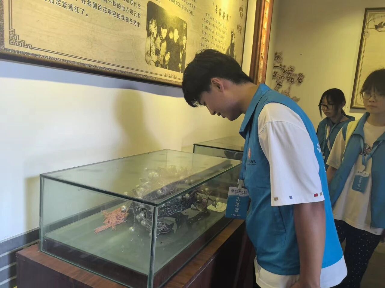 上午,队员们在引导老师的带领下,游览青野村。村内特色墙绘生动展现五音戏经典剧目,诠释其百年发展历程。随后,实践团队来到五音戏博物馆。馆藏文物丰富多样,包括清末民初的手工刺绣戏服、上世纪中叶的木制戏箱等珍贵实物资料,完整呈现了五音戏从民间“秧歌曲”逐步发展成熟为地方代表性剧种的历史轨迹。在沉浸式参观体验中,队员们被五音戏魅力深深吸引,大家直呼:“收获满满!”。