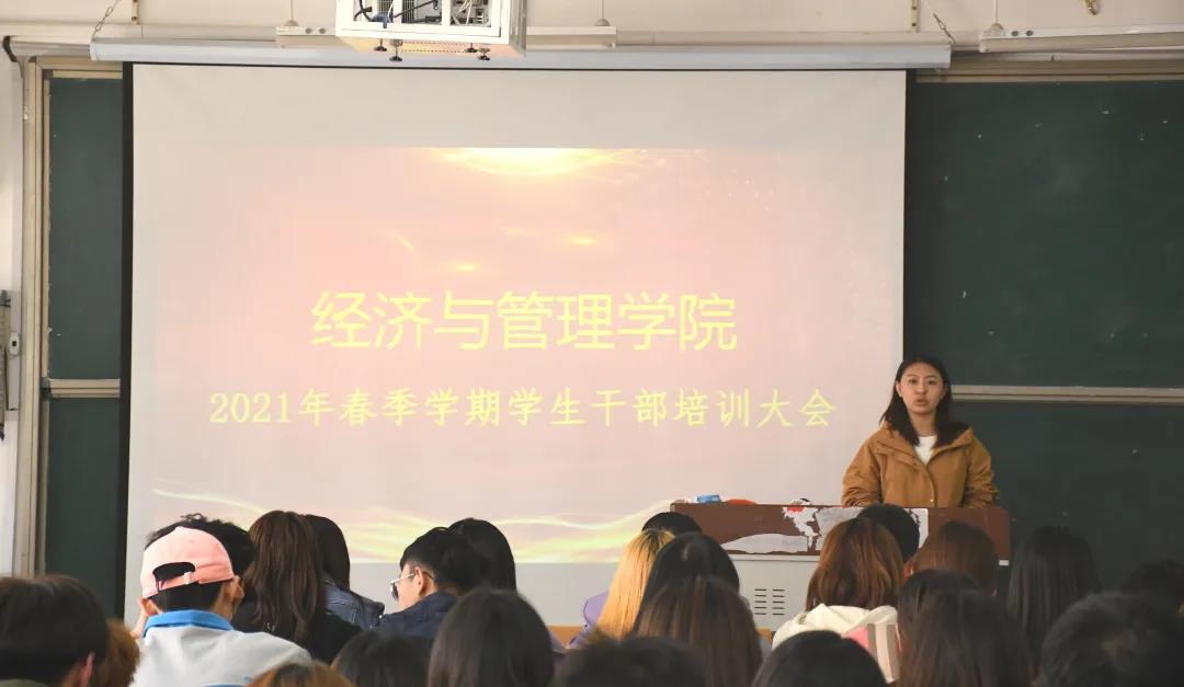4月19日,我院学生会于二号教学楼b308教室开展2021年春季学期学生干部培训大会,本次会议由辅导员司书琪老师主持,团总支书记高超及全体学生会成员出席本次会议。