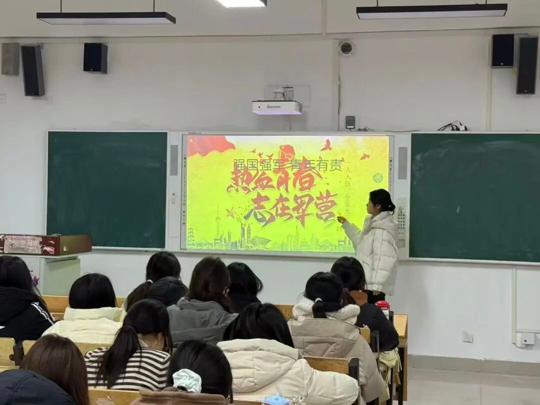 为深入贯彻习近平强军思想,响应国家征兵工作号召,切实激发青年学子参军报国的热情,我院于12月21日成功举办“携笔从戎,青春无悔”征兵宣讲主题班会。2025级全体学生共同参与,通过政策解读、经验分享、互动答疑等形式,让国防观念深入人心,让参军信念点燃青春。