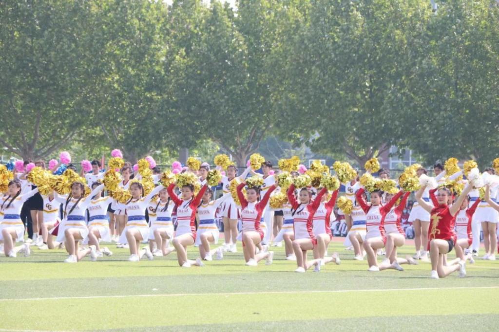 开幕会上最具热情的除了同学们,当属各个学院的啦啦操了!场地中心的那片充满青春活力的火红色,是经济与管理学院的啦啦操成员们在尽情的舞蹈。他们用整齐有序的动作向我们诉说着他们对此次运动会的热情与专注,手中挥舞的金色花球折射出耀眼的光芒,与成员们的热情共同构成了开幕式上最具热情的花海。