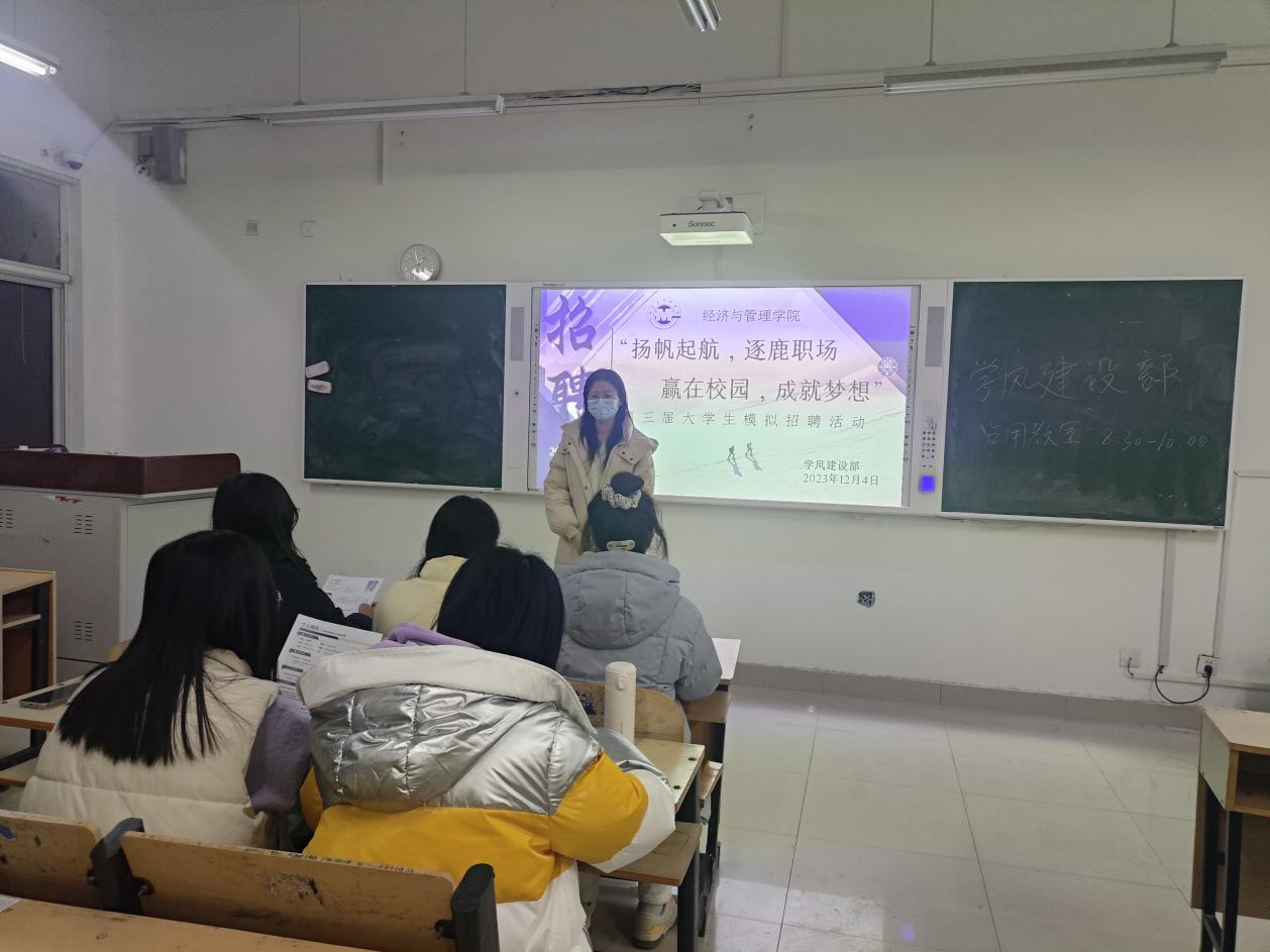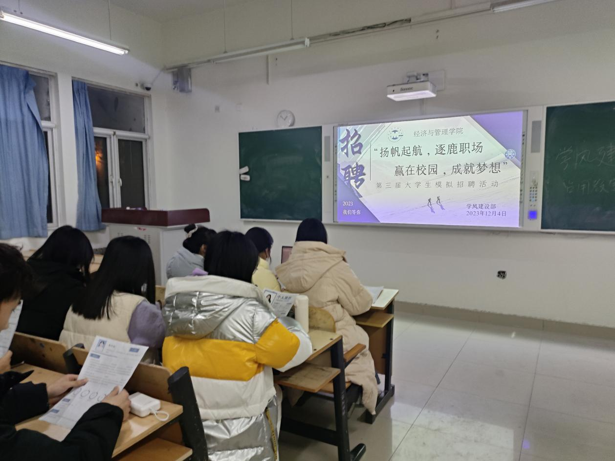 为了帮助大学生提升求职技能、增强沟通和应变能力,我院于12月4日晚上20点30分在一教B233教室成功举办了“第三届大学生模拟招聘”活动。参与本次活动的人员为线上报名的各年级同学和活动相关负责人。