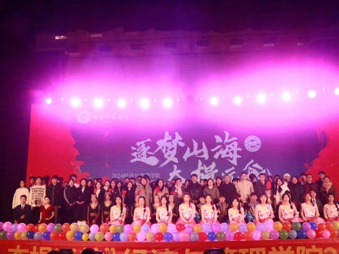 光阴似箭,万象更新。我院“逐梦山海 奋楫远航”庆元旦文艺展演圆满结束,这是一场师生精心准备的视听盛宴。在接下来的一年中,我院全体师生将上下一心,踔厉奋发,齐心协力,共同迎接挑战,不断在学术的海洋中破浪前行。作为经管学子,我们深知,只有坚定的信念和不懈的努力,才能书写属于我们的辉煌篇章。面对未来,希望我院的莘莘学子,以斗志昂扬的姿态,迎接每一个挑战,不畏艰难险阻,始终保持初心,砥砺前行,共同书写我院新的辉煌!
