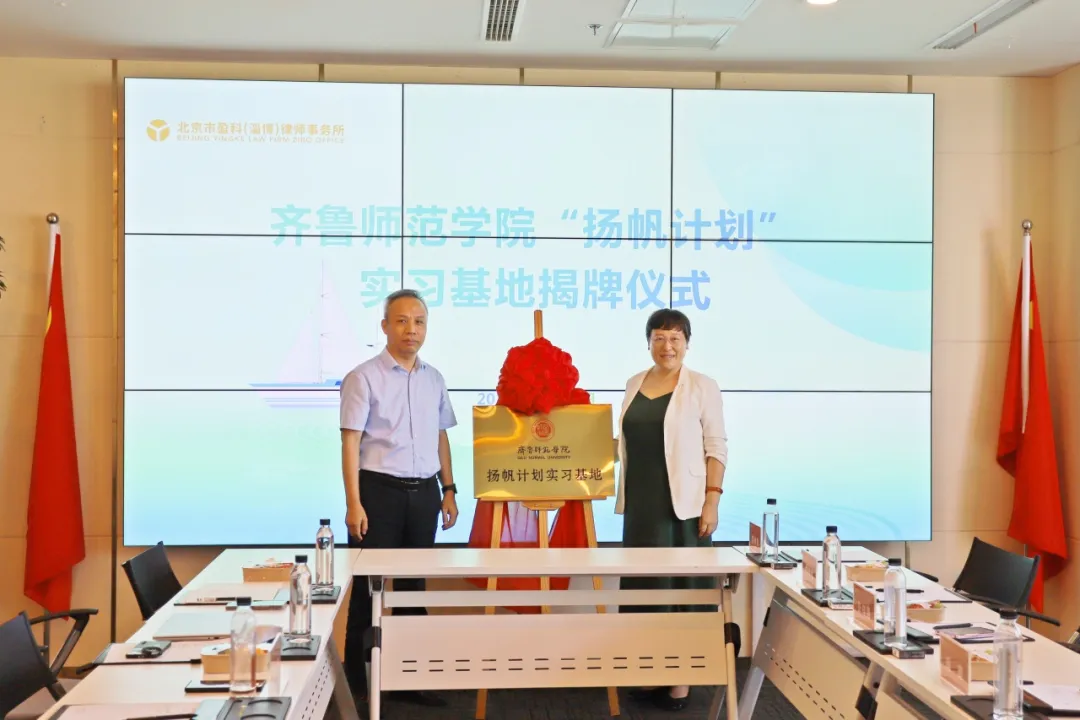 首先,我院党委书记张帜、院长周健、团总支书记张祥艳以及办公室主任张扬来到淄博市盈科律师事务所举行“扬帆计划”实习基地揭牌仪式,以基层沃土培育青春之梦,用专业实践搭台筑巢引凤。本次揭牌仪式成功搭建了盈科淄博与齐鲁师范学院的沟通桥梁。未来,双方将进一步聚焦社会法治人才培养需求,深入开展更多具有战略性、前瞻性、交叉性的务实合作,致力于培养更多具备专业素养和实践能力的法治人才,为更好地服务法治中国建设贡献力量!
