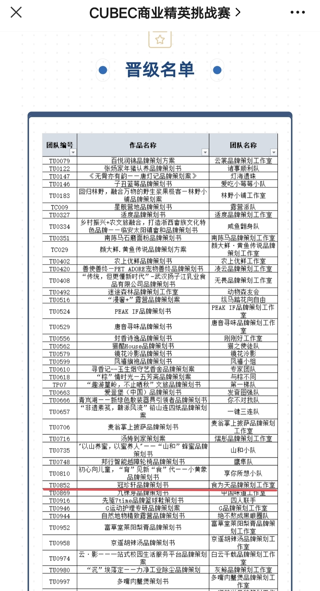 喜报——我院食为天品牌策划工作室晋级全国商业精英挑战赛品牌策划竞赛精英赛