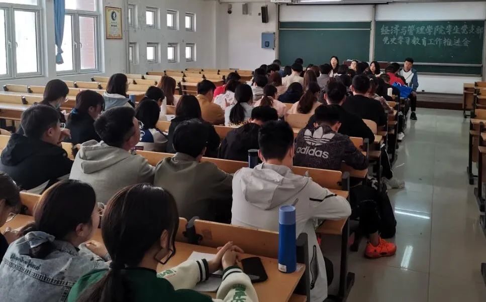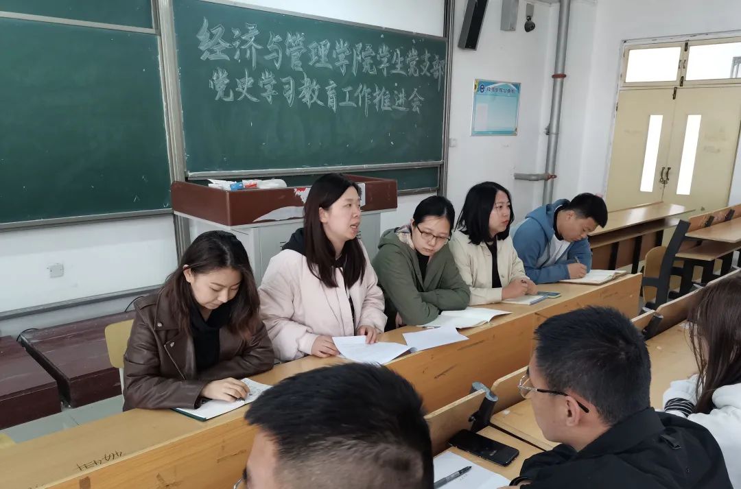 4月14日,我院学生党支部于二号教学楼b308教室开展党史学习教育推进会,本次会议由学生党支部书记高超主持,吕闻佩、司书琪、宋凯、徐文婷等辅导员老师和学生党支部成员及发展对象出席本次会议。