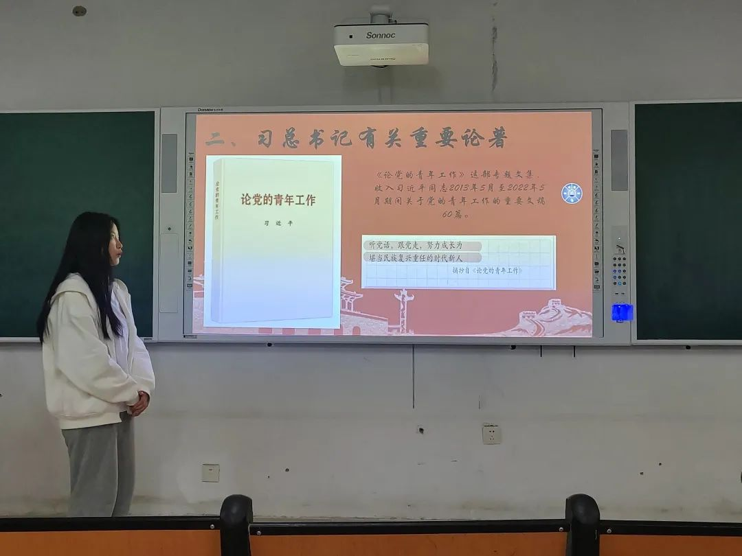 为深入学习宣传贯彻党的二十大精神,学习习近平总书记的重要思想与著作,全面把握党的十八大以来的历史性成就、历史性变革,我院于3月14日晚自习期间在各班晚自习教室内开展了读书宣讲的活动。宣讲内容主要围绕学习党的二十大精神、学习习近平同志《论党的青年工作》等重要著作、以及加强新时代青年爱党爱国的思想觉悟和责任担当等多个方面展开。