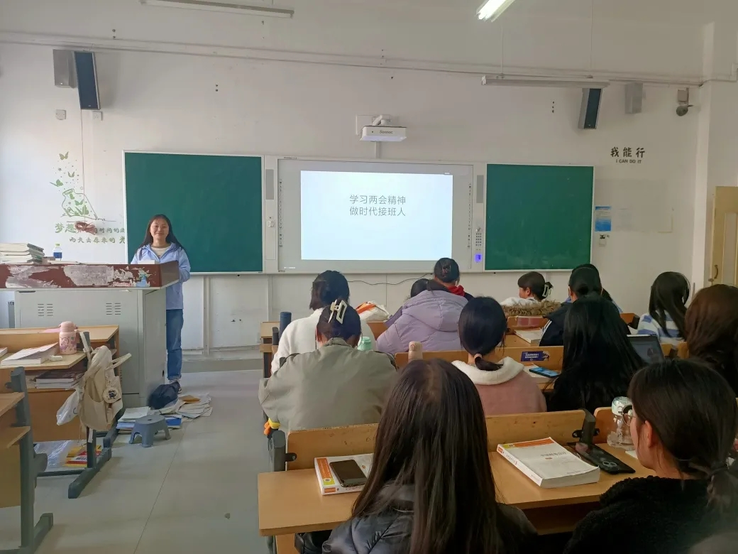 为深入学习两会精神,抓住时代发展机遇,提高同学们对国家政治的关注度和参与度,我院2022级全体同学于3月17日在一教各班级教室进行了“学习两会精神,做时代接班人”为主题的政治学习。