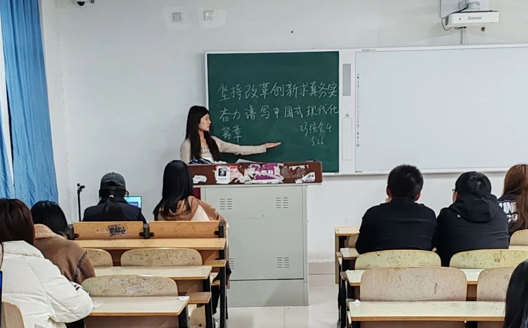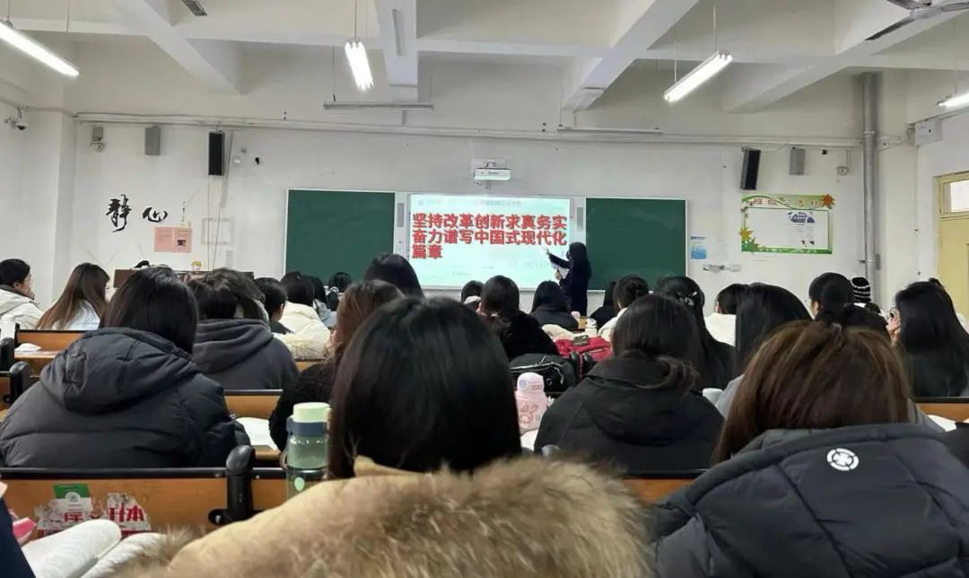 为了深入学习改革创新、求真务实的理念,强化同学们的民族责任感,进而更好地谱写中国式现代化的新篇章。3月28日下午,我院23级全体同学于一教各班自习室内开展了以“坚持改革创新求真务实,奋力谱写中国式现代化篇章”为主题的政治学习会议。