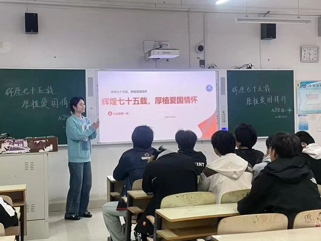 为了深刻感悟中国发展历程,增强创新意识,继往开来续写中华民族复兴的伟大篇章。我院24级全体同学于10月26日下午在一教各班自习室内开展了以“辉煌七十五载,厚植爱国情怀”为主题的政治学习会议。