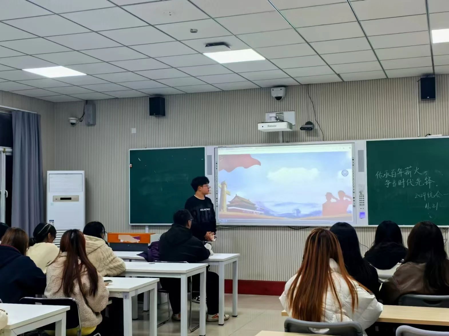 为进一步强化青年学生的思想政治教育,坚定理想信念,我院24级全体同学于11月21日晚上在各班自习教室举行了以“传承百年薪火,争当时代先锋”为主题的政治学习。