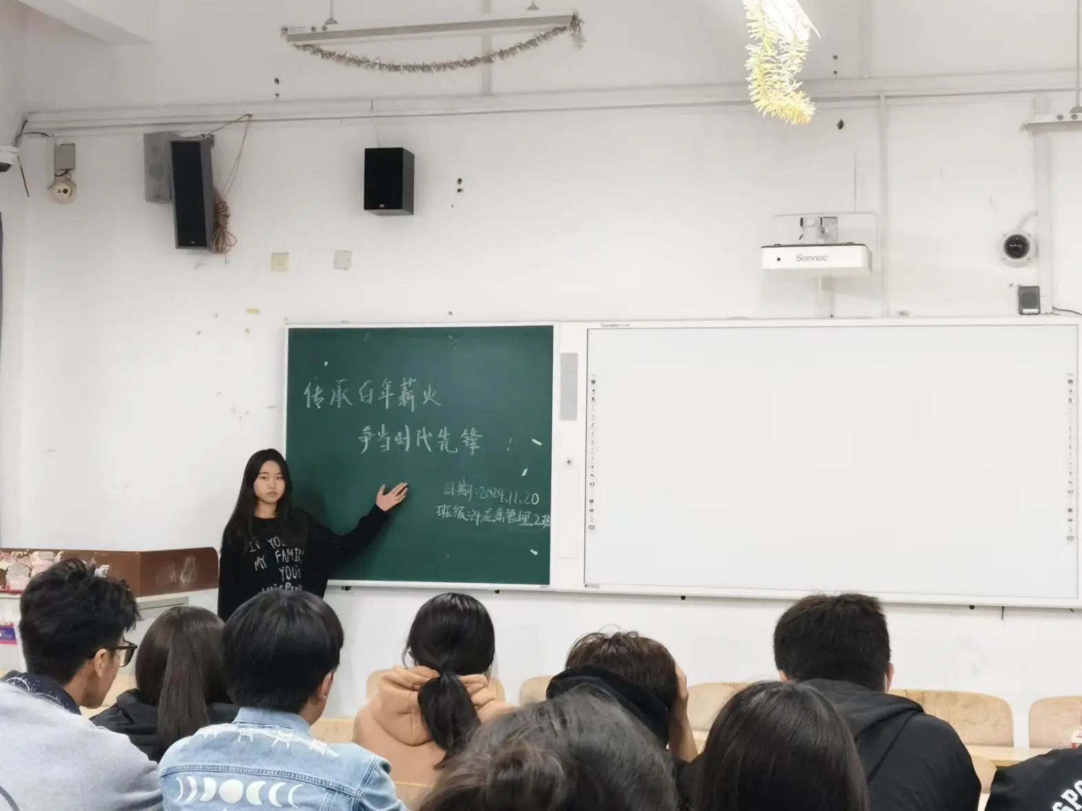 会议伊始,主持人向同学们讲述了传承的意义。当今社会,青年一代正以昂扬的姿态,争当时代先锋,勇立时代潮头。吾辈青年,站在新的历史起点上,回顾历史,展望未来,当以实际行动践行初心,让红色血脉在新征程中焕发新生。