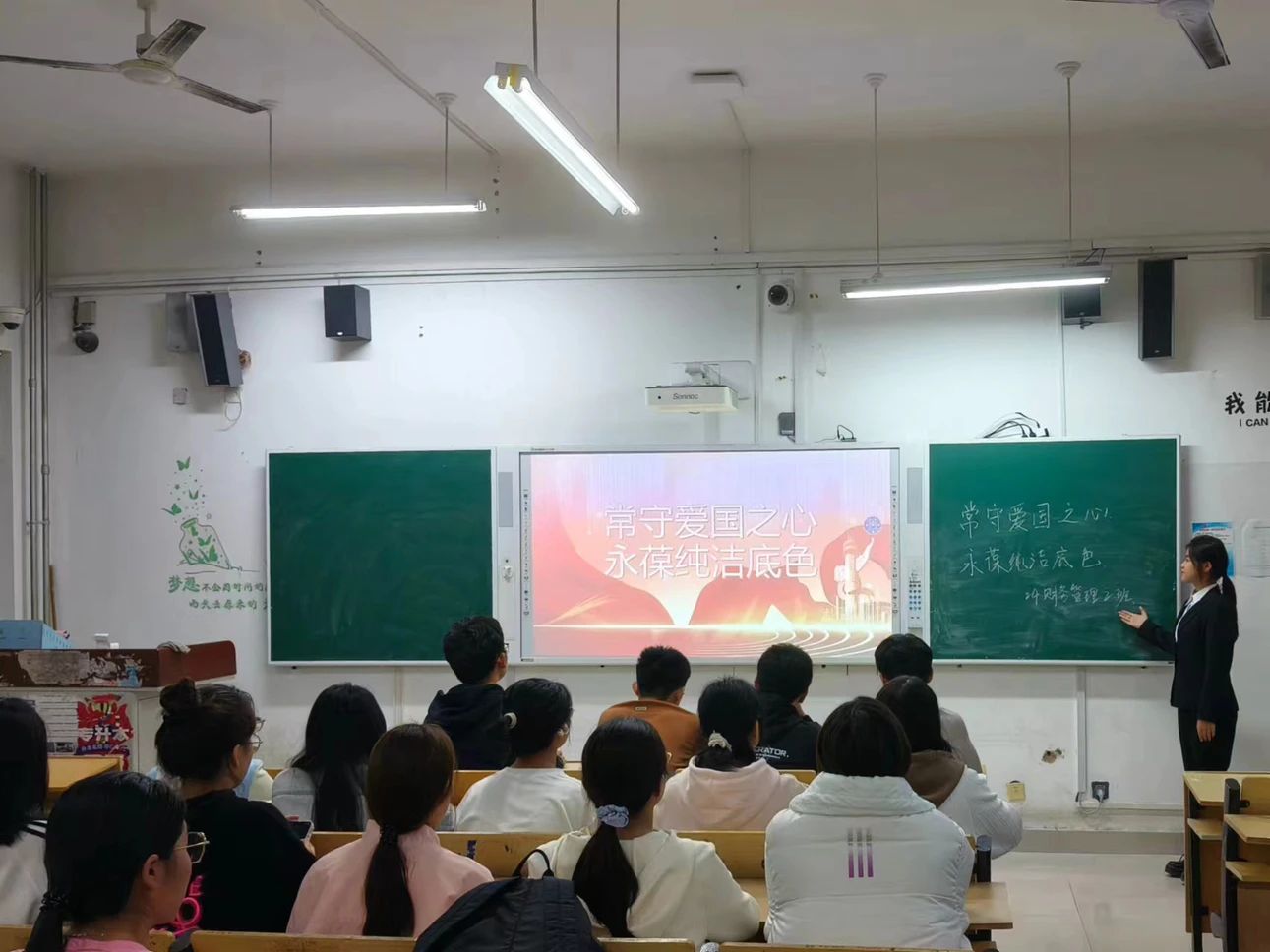 会议伊始,主持人向同学们讲述了保持爱国之心的重要性,他强调了青年群体作为国家未来的建设者和接班人,承担着继往开来的重要使命。作为新时代青年,我们应该怀赤诚爱国情,持纯洁初心,勇担重任,以行动践行承诺,共绘祖国繁荣盛景。