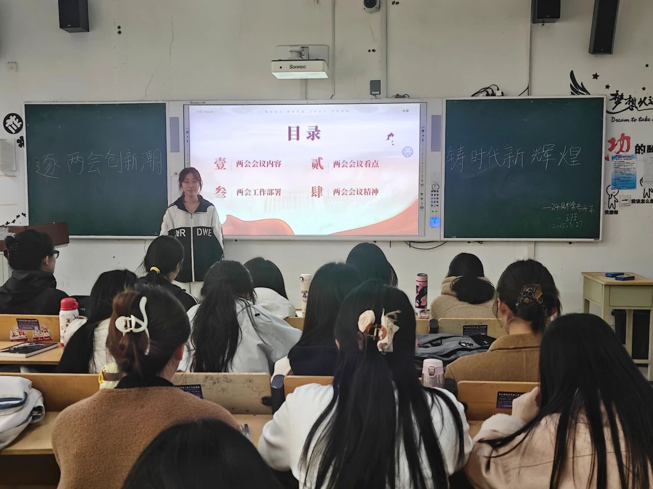 为深入贯彻2025年全国两会精神,激发青年学子创新思维,引领其积极投身时代建设浪潮,我院24级全体同学于3月27日在各班自习教室,开展以“逐两会创新潮,铸时代新辉煌”为主题的政治学习活动。