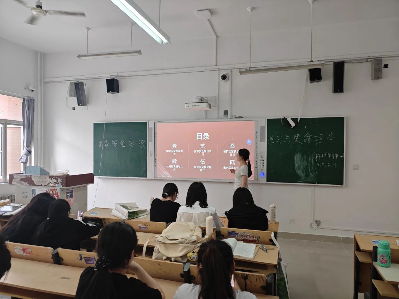 为深入贯彻落实总体国家安全观,增强同学们的国家安全意识,培养维护国家安全的责任感与使命感,经济与管理学院24级全体同学于4月17日在各班自习教室开展了以“学国家安全知识,担维护安全使命”为主题的学习活动。