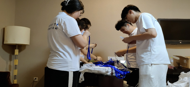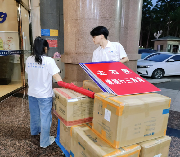 在收到当地“石匣戏剧节”的筹备工作人手紧缺的消息后,队员们积极报名,在村书记的带领下快速前往筹备地点。