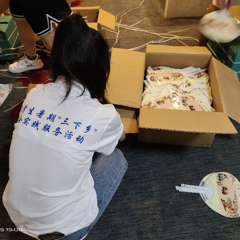 队员们将戏剧节伴手礼的材料分类整理,并将其搬运至指定地点,随后跟随当地保安人员参读整理乡村振兴宣传栏。戏剧节举办当天,队员们一刻不停地招待前来观看的嘉宾,并为每位村民分发精心准备的伴手礼。
