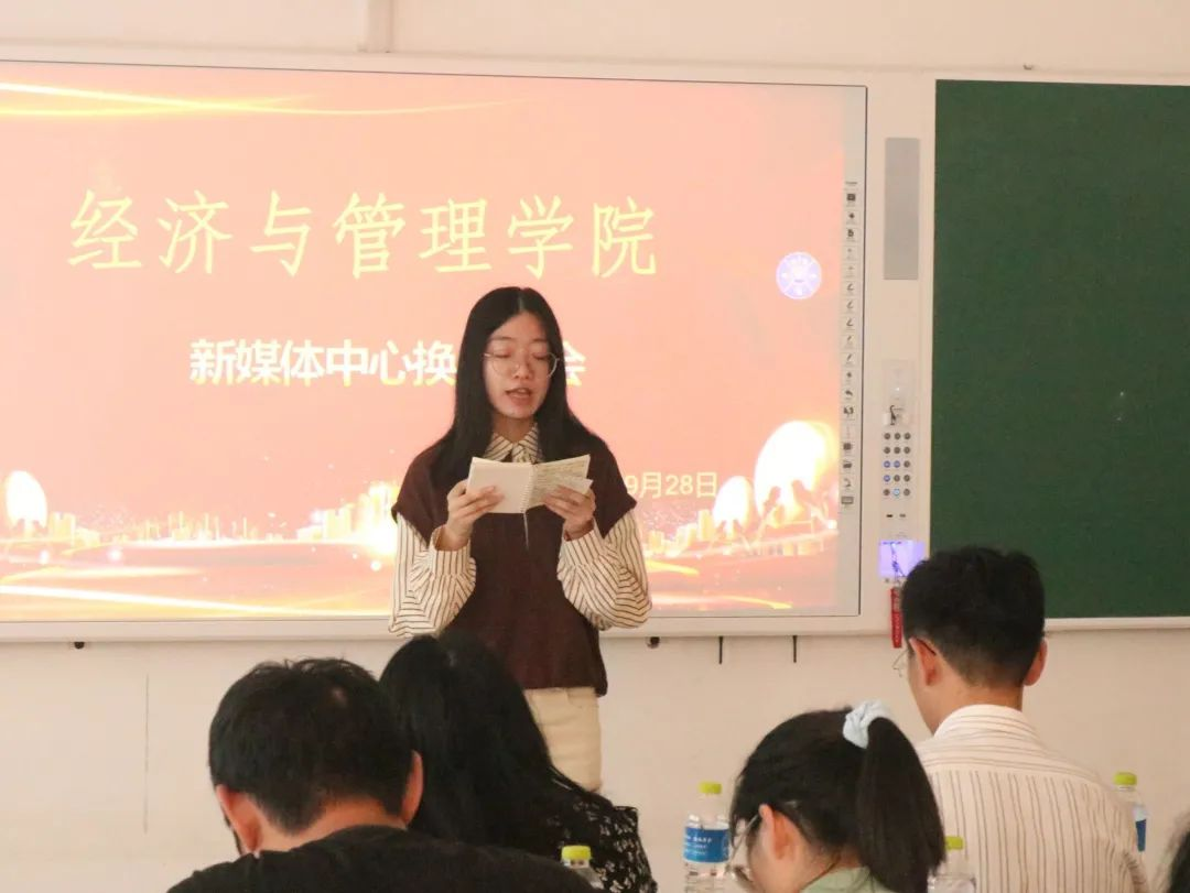 会议伊始,徐文婷老师介绍了新媒体中心承办的宗旨与意义,并指出随着网络时代的发展,做好党团宣传文化工作,选拔优秀的新媒体工作者,保证学院新媒体各项工作持续推进。经济与管理学院高度重视本次新媒体中心换届。