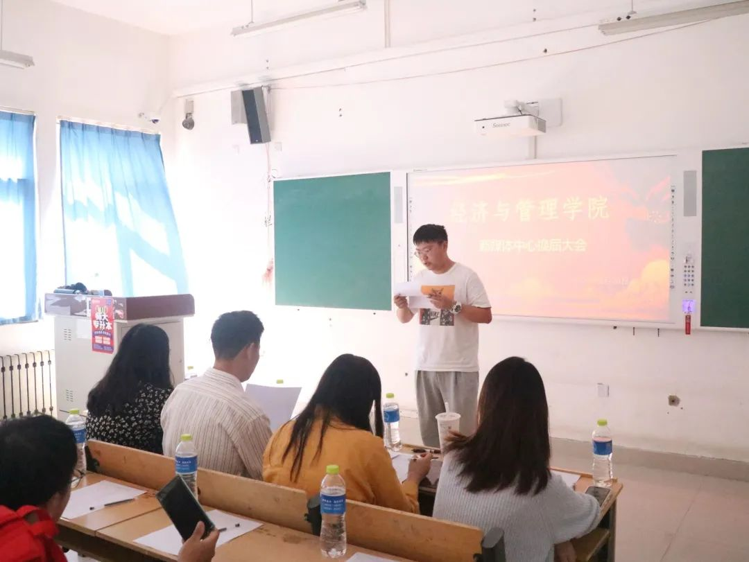 9月28日中午12:30,经济与管理学院新媒体中心换届大会于1教B229举行,出席本次会议的有经济与管理学院党委副书记吴立伟、团总支书记高超、辅导员徐文婷老师,校组织相关负责人杨筱璇以及经济与管理学院学生会、学生自管会主席团部分成员。
