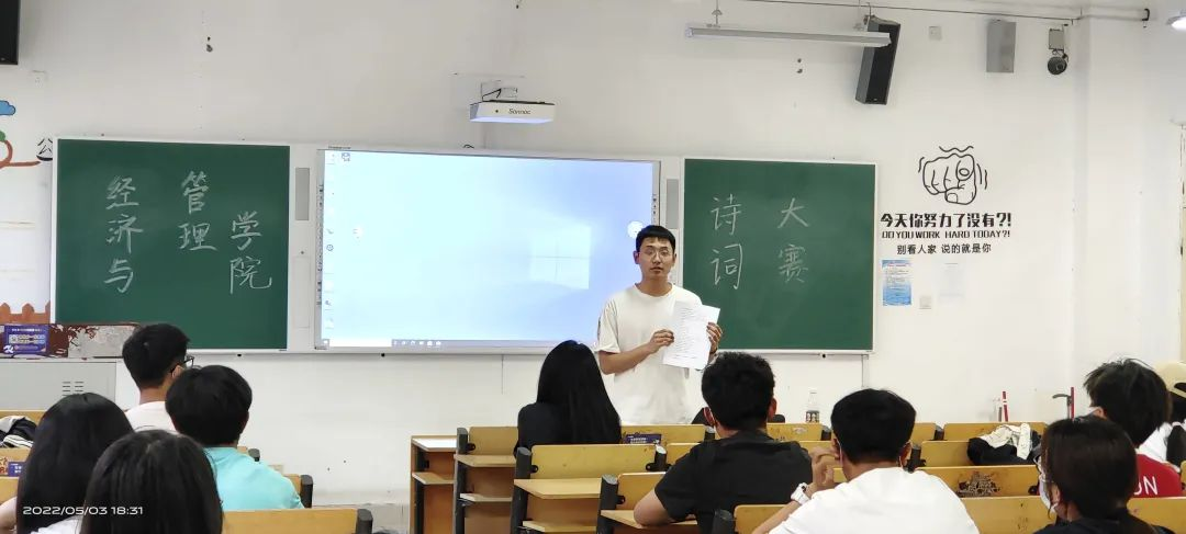 中国诗词文化博大精深,诗词于同学们而言不仅是文化的积累,更是由内而外的精神的涤荡。经济与管理学院举办了“品汉字之美,赏诗词之韵”诗词大会,希望我们在比赛中可以领略到诗词中的韵味和其无限的遐想。这世世代代相传的精神财富,早已融入了我们的血脉里,塑造着我们的精神面貌,淬炼着我们的思想,让我们去拥抱那最美的诗和远方。