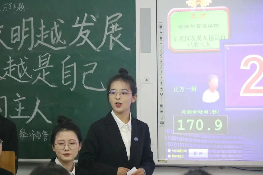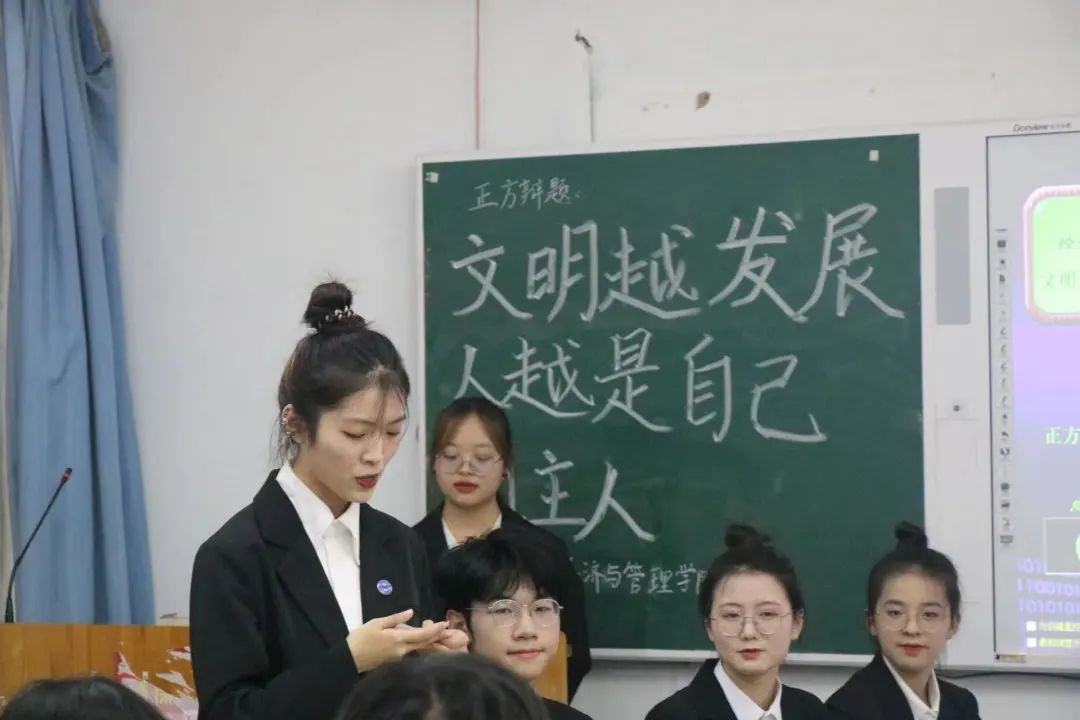 11月19日下午17点30分,第十三届校级辩论赛复赛在二教A310正式开始,参赛双方为经济与管理学院与学前教育学院的辩手们。本次比赛正方我院的辩题是:文明越发展,人越是自己的主人。反方学前教育学院的辩题是:文明越发展,人越不是自己的主人。双方辩手准备就绪,精彩对决即将开始。