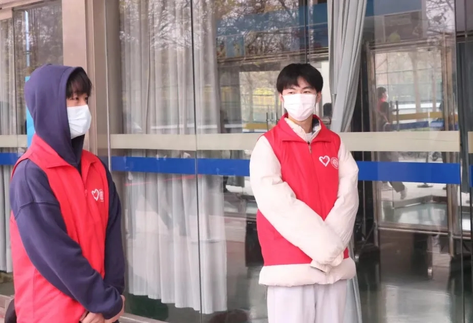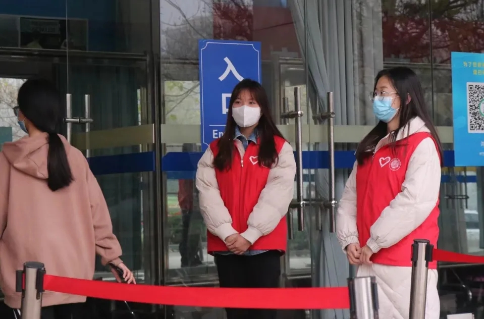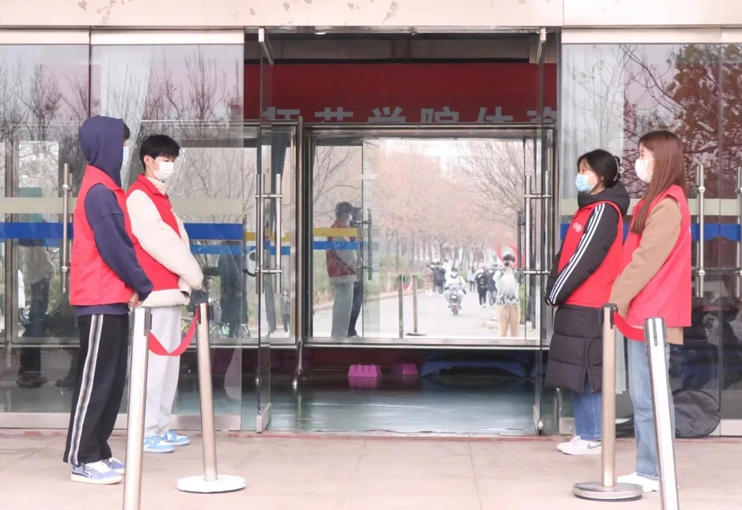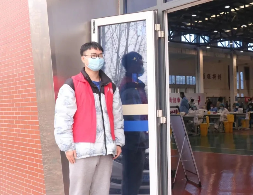 伴随着大风降温降水的恶劣天气,志愿者们顶风冒雨,及时到岗。在志愿活动中,他们维护现场秩序,督促大家提前准备好健康码,时刻提醒同学们保持间隔一米的安全距离,并耐心解答同学们的疑惑,助力创造有序的核酸检测现场。志愿者们用朴实无华的行动,躬身践行着“奉献、友爱、互助、进步”的志愿精神。