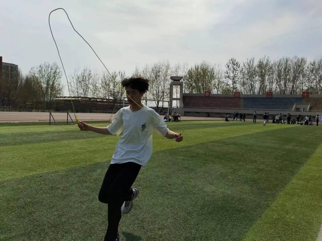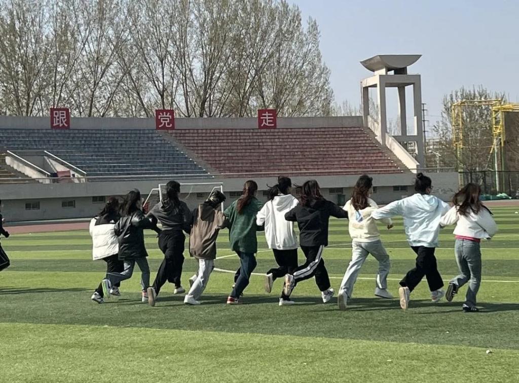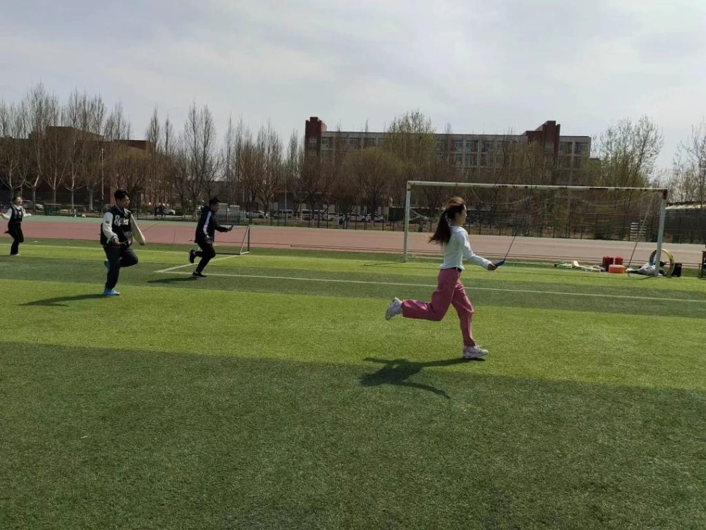 各班派出12人分成四组,依次进行折返跑,最后一组跑完即完成比赛。看似轻松的比赛内容,实则是力量与技巧的碰撞。逆风而行,发丝飞扬,暖阳下青春洋溢的参赛者们,以青春无畏姿态,向着目标前进。