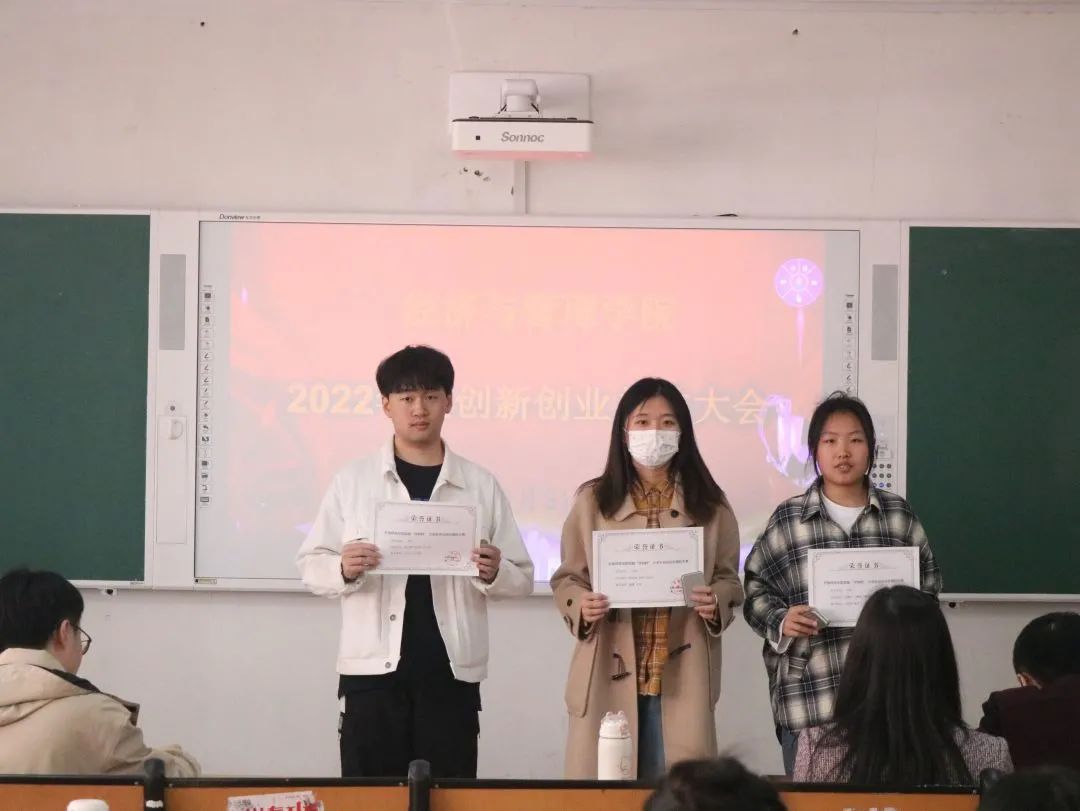 为了提高同学们的创新创业本领,培养学习意识,激发参赛激情,我院于3月31日12点30分在一教b208教室举行了我院2022年度创新创业总结大会。出席本次会议的有我院团总支书记高超、我院辅导员殷大鹏、徐爱林老师以及相关获奖团队的部分学生代表。本次会议由徐爱林老师主持。