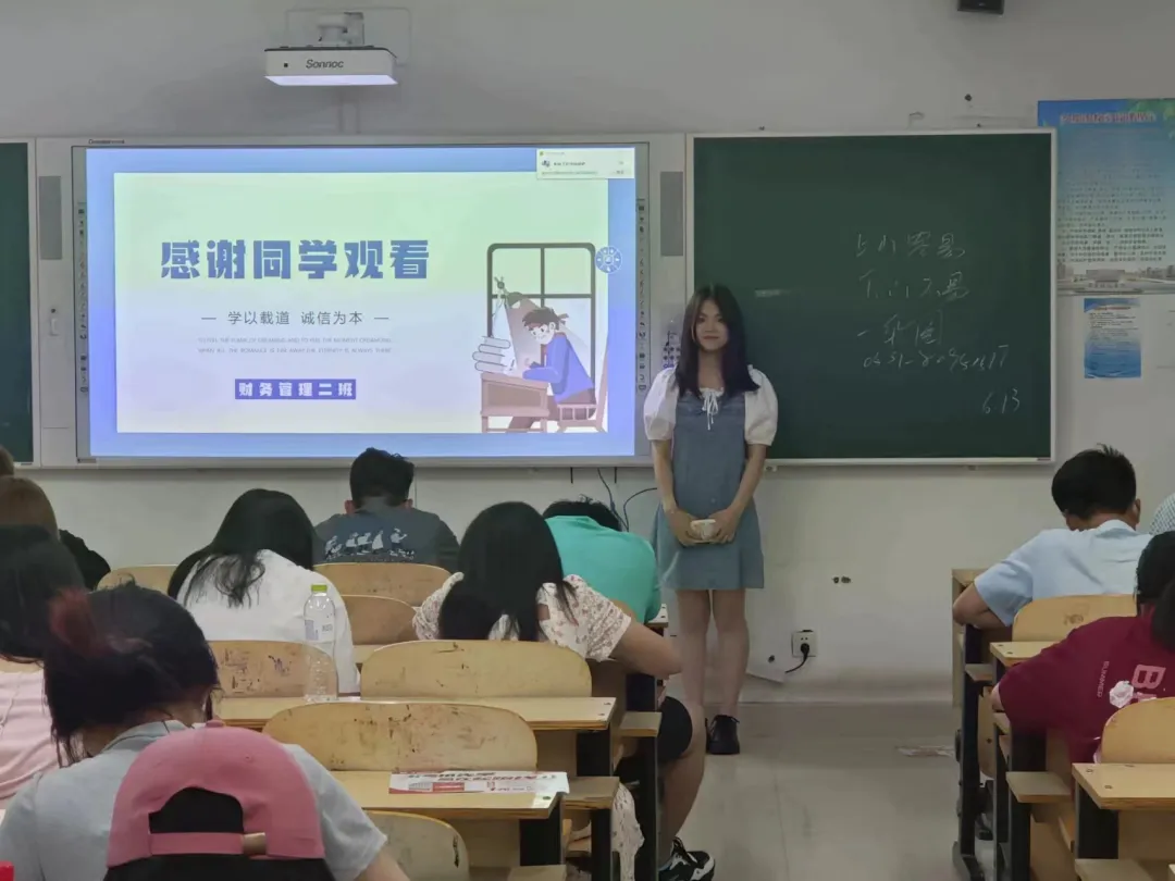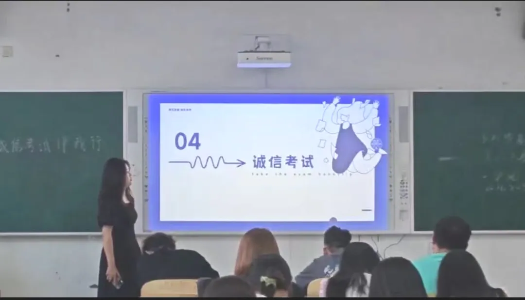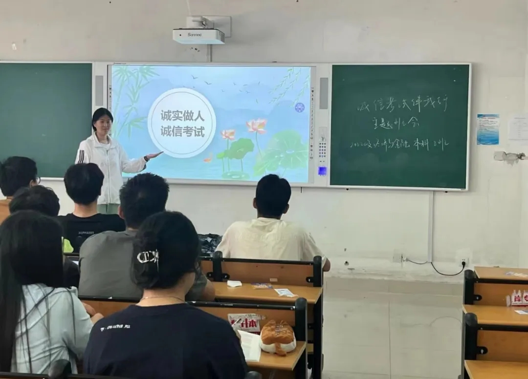 为端正考风考纪,切实增强学生贯彻落实诚信考试的思想,保障教学质量,加强学院文明意识教育。6月12日下午,我院2022级全体同学于一教各班自习室内,开展了以“诚信考试”为主题的班会。