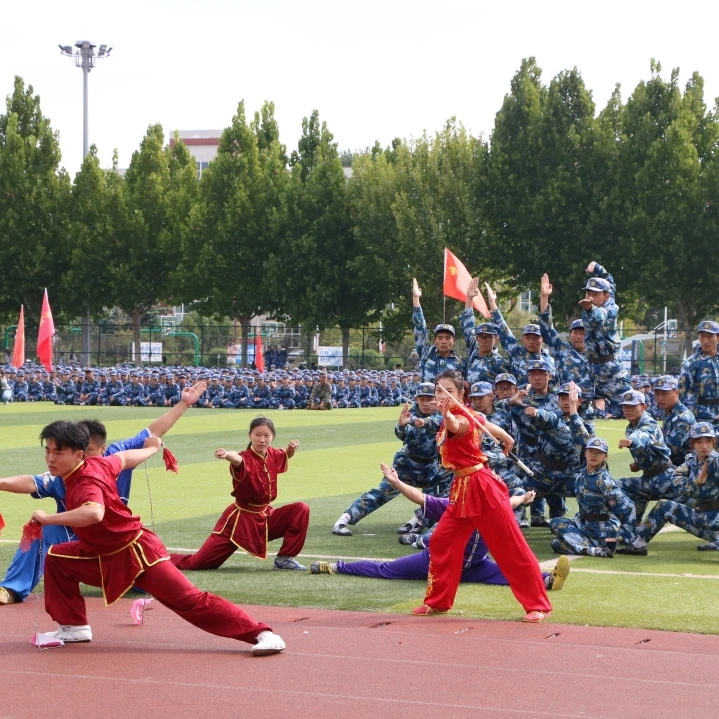 接下来的军训科目汇报表演中,养成方队率先登场,昂扬的气势,干脆的动作,展现了铎铎英气。而后的武术表演中,刀枪棍棒相继亮相,动作似蛟龙戏水般灵活自如。军体拳铿锵有力,招式之间,气势震天,尽显凛然风采。擒敌动作威武豪迈,拳拳到位,侵掠如火,眼中尽是坚毅。烟雾弥漫间,他们配合默契,动作迅速,卧倒、匍匐前进,战术动作一气呵成。
