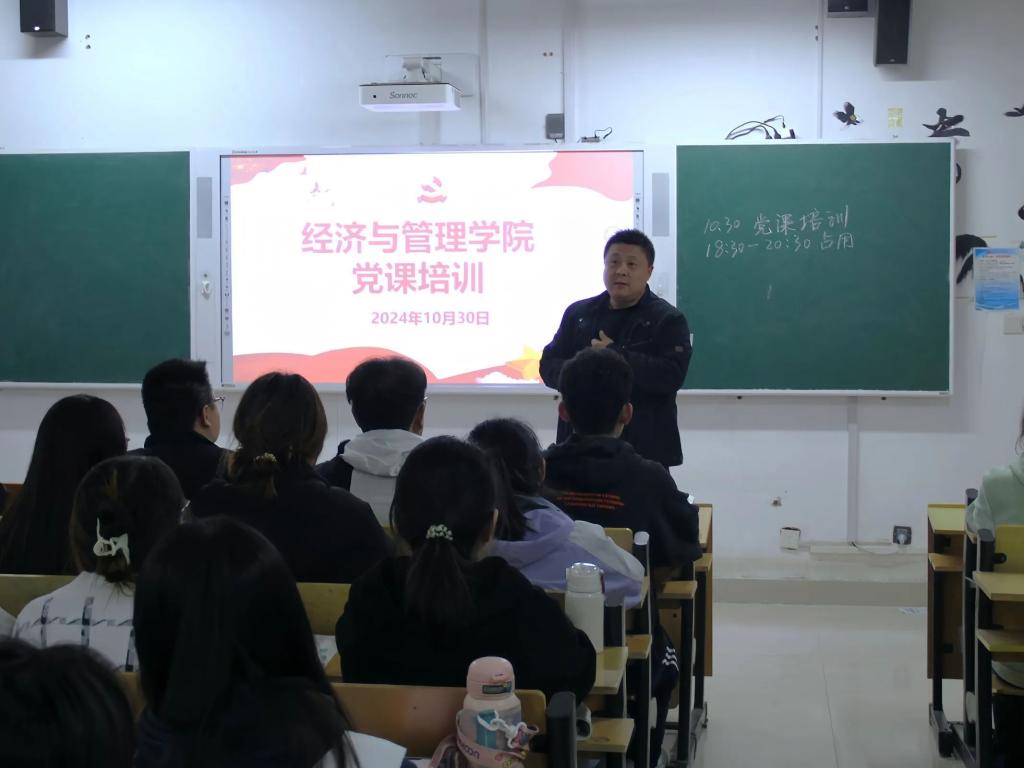 为深入学习贯彻习近平总书记重要讲话精神,进一步增强党员荣誉感和使命感,切实肩负起历史使命和时代重任,我院于10月30日晚19:00,在1教B229开展党课培训。经济与管理学院党委书记张帜主持会议,我院的全体学生党员和发展对象积极参与。