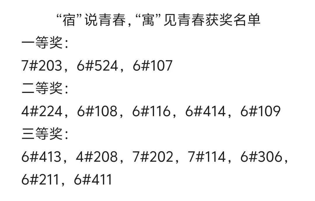 活动结束,共有15个宿舍成功脱颖而出,荣获“优秀宿舍”称号。此次活动不仅增强了宿舍成员之间的凝聚力和团队协作能力,营造了积极向上的宿舍文化氛围,更为宿舍生活增添了一抹温暖而难忘的色彩,让每一位成员在日后回忆起这段时光都充满幸福与自豪。
