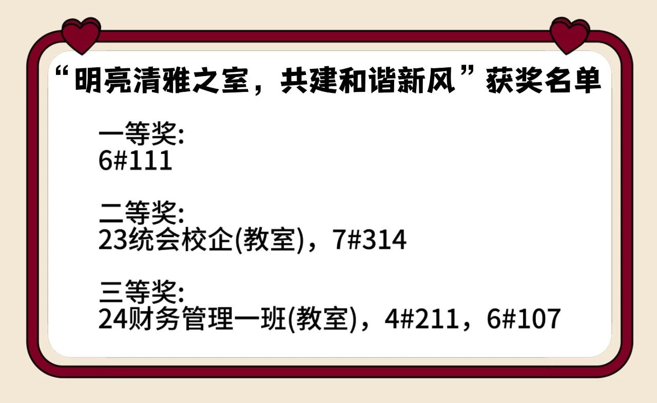 活动落幕,六支队伍脱颖而出,荣获“最美教室”与“最美宿舍”称号。本次活动的成功举办,既为同学们提供了一个展现才华与创意的舞台,又有效地促进了优良学风和宿舍风气的形成,为经济与管理学院的校园文化建设增添了浓烈的一笔。
