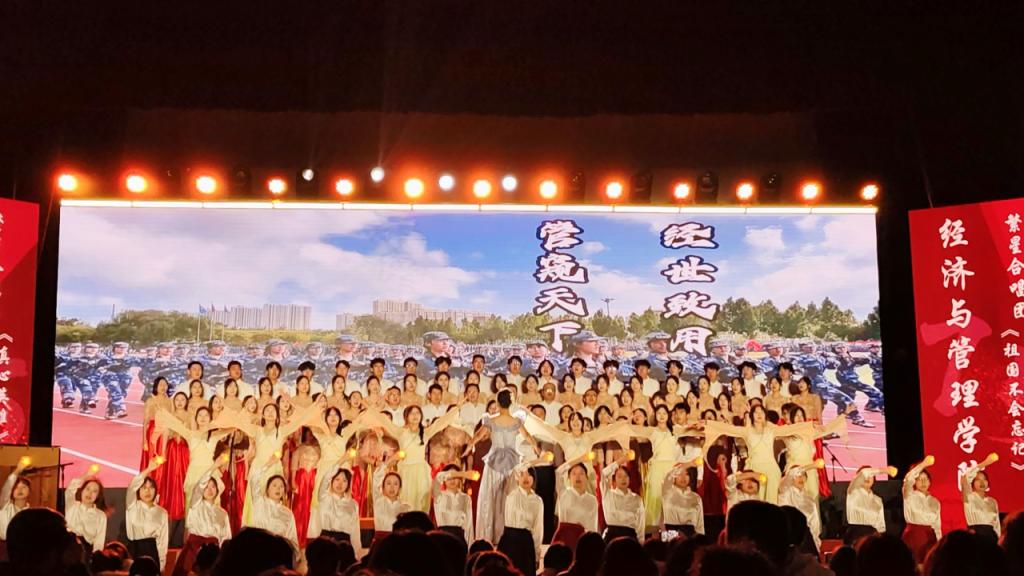 合唱团成员们用悠扬的歌声传达出对祖国深深的热爱之情,表达了对党的崇高敬仰之意,在歌声中传承红色基因,发扬红色传统。经济与管理学院全体师生将始终坚守本心、秉持本真,坚定信仰,勇扛历史赋予的责任,以青春之姿奋力书写时代华章。