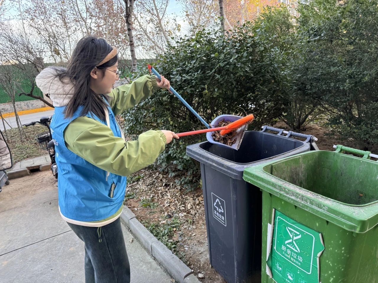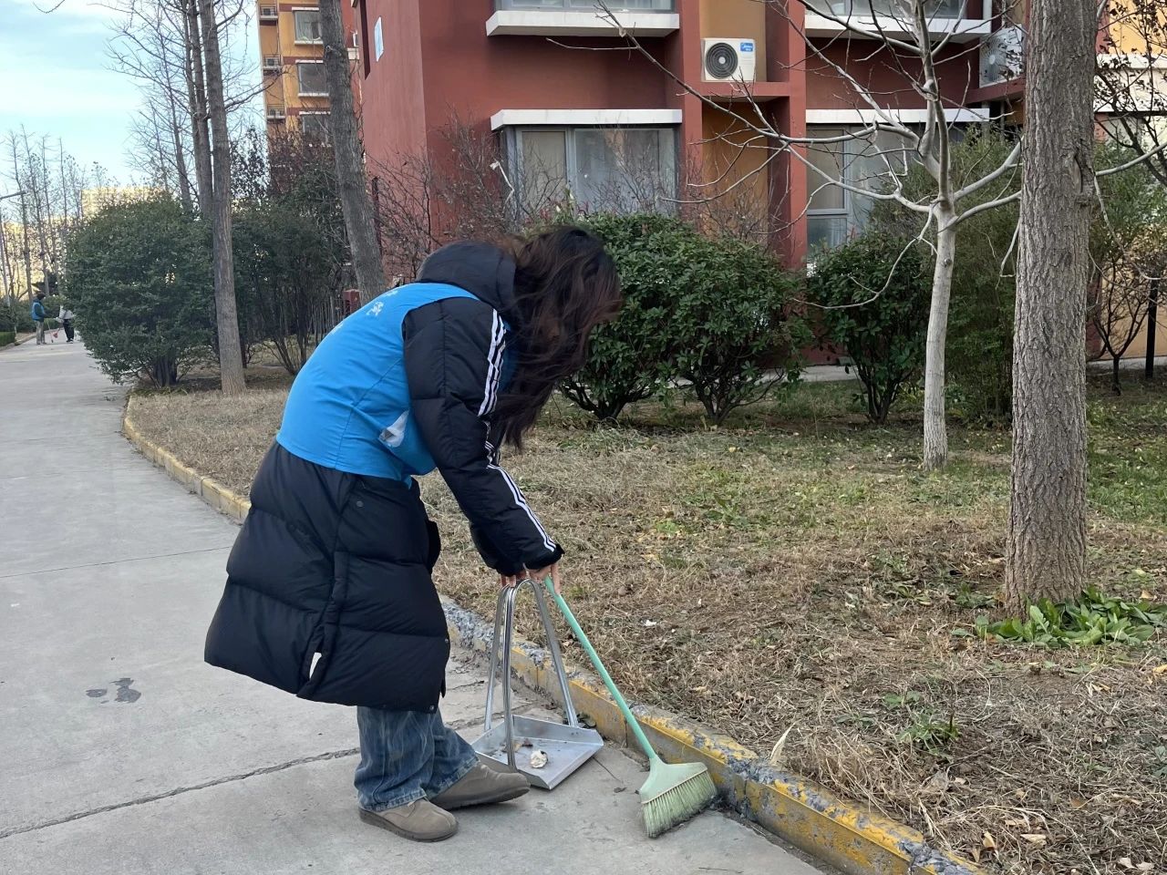 活动伊始,负责人对志愿者们进行分工,部分同学负责清理小区垃圾,以美化小区环境;部分同学主动与居民热情互动;还有部分同学上门入户,与居民亲切交流。他们用实际行动为社区注入了温暖和活力。同时,志愿者们向居民宣传环保知识,呼吁大家养成垃圾分类的好习惯,倡导绿色生活理念,以推动营造一个干净、整洁的居住环境。
