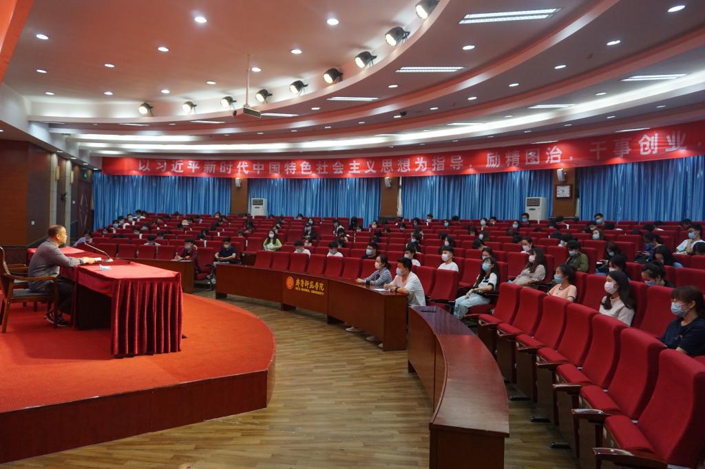 为认真贯彻落实学校有关学生返校后的工作部署要求,做好疫情防控期间在校学生的管理工作,6月18日下午18:30,我院党总支书记杨自旗同志在学术报告厅为我院返校毕业生开展“书记第一课”,党总支副书记郭百灵、辅导员宋凯参加会议。