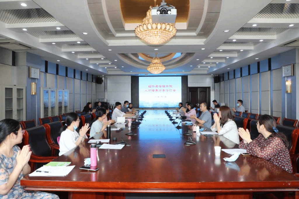 5月21日下午14:00,经济与管理学院在图书馆四楼会议室召开本科专业人才培养方案修订会,齐鲁师范学院党委副书记、校长林松柏、教务处副处长杜建彬受邀出席会议,会议由院长蔡平主持,学院党总支书记杨自旗、副院长李剑、学院党总支副书记郭百灵及学院所有教职工参加了会议。
