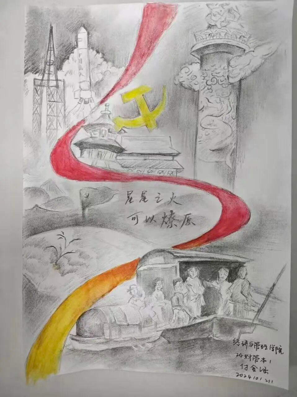 为弘扬爱国精神、厚植家国情怀,引导学生在艺术创作中感悟民族力量,我院学生会基层建设部于12月21日18时,在一号教学楼B208教室举办“画传薪火,共绘中国梦”爱国教育绘画比赛,以绘画作品生动展现爱国主义情怀与昂扬向上的时代精神。