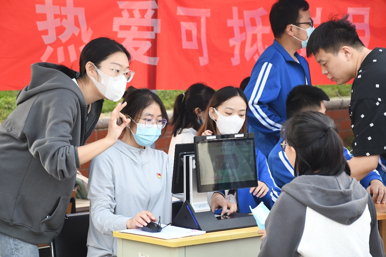 经济与管理学院党委书记杨自旗、党委副书记吴立伟以及全体辅导员来到迎新现场,深入了解省外新生报到情况,对志愿服务以及现场部署做了详细指导。由于目前疫情防控形势严峻复杂,我校迎新采取封闭管理措施,为让省外新生顺利入学报到,我院为新生提供“一对一”精准对接志愿服务。当新生进入校园的那一刻志愿者第一时间接过行李,陪伴新生进行行李消杀、查验健康码、大数据通行卡、报到登记、人脸采集、领取校园卡等报到流程,整个报到流程中志愿者与新生一对一对接,缩短报到时间,防止人员聚集,确保入学流程有序、安全进行。整个迎新现场严格按照疫情防控要求进行,现场井然有序,一对一精准志愿服务,获得2022级省外新生一致好评。