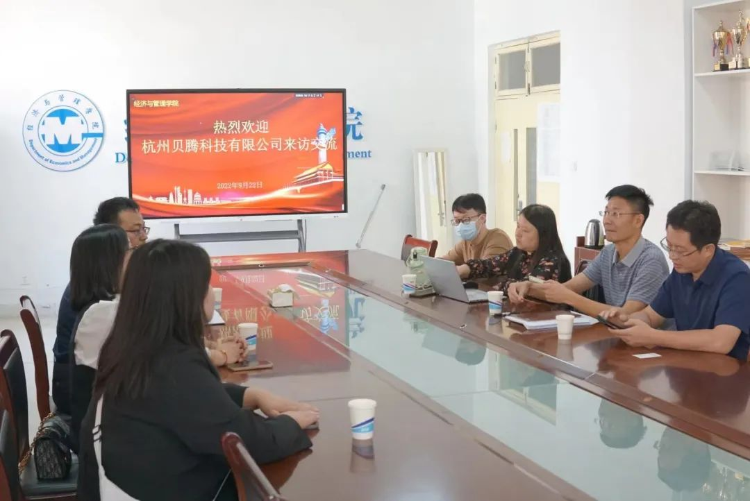 9月22日上午十点,经济与管理学院于一教b206会议室举行了杭州贝腾科技有限公司来访交流会,出席本次会议的有经济与管理学院副院长孙鹏、学院党委副书记吴立伟、财务管理教研室主任司伟、经济与管理学院辅导员徐爱林、杭州贝腾科技有限公司有关领导以及相关学生代表。