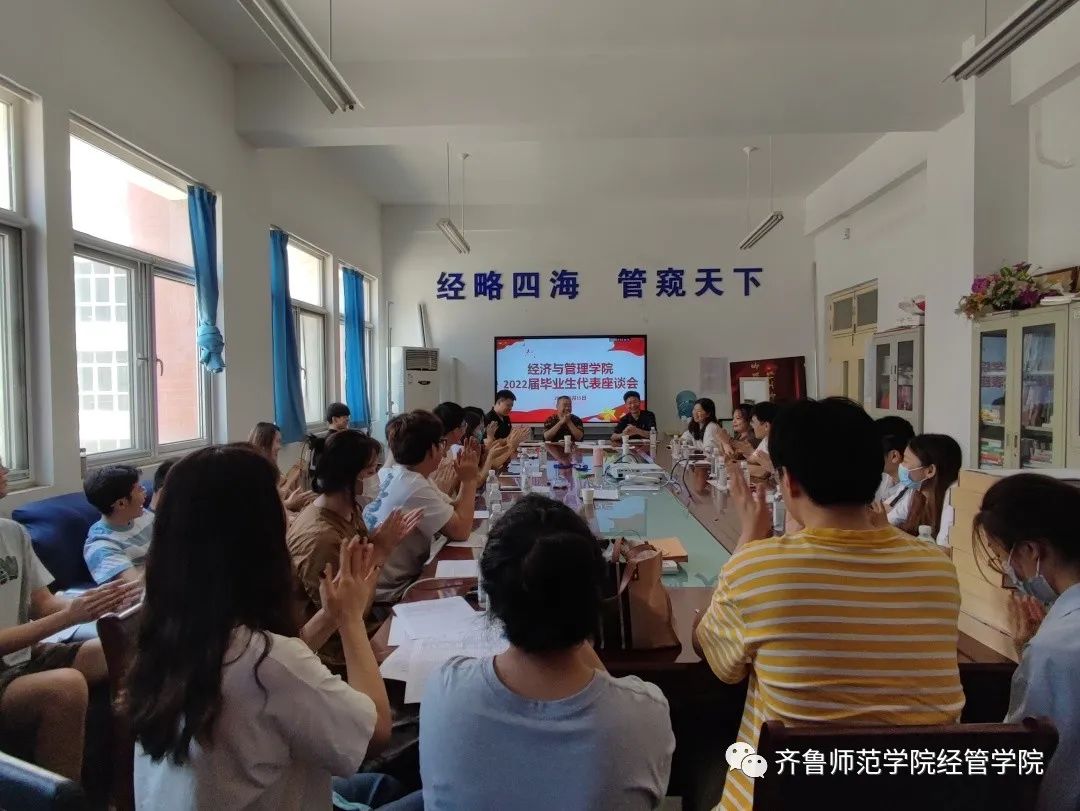 6月15日中午,齐鲁师范学院经济与管理学院召开2022届毕业生代表座谈会。我院党委书记杨自旗、党委副书记吴立伟、团总支书记高超、各毕业班辅导员出席会议,我院毕业班学生代表参加座谈会。