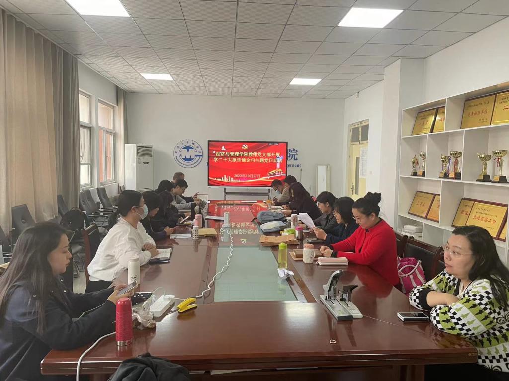 为深入学习贯彻党的二十大精神,20221027日下午,经济与管理学院教师党支部组织开展了“学党的二十大报告 诵金句”活动。一起学报告、读“金句”,感悟思想伟力,汲取奋进力量。每位老师都大声朗读着“金句”,字字铿锵、句句振奋,认真领悟每一句“金句”蕴含的精神实质和思想内涵,感悟习近平总书记的大国情怀、为民情怀,坚定新发展新征程的决心。