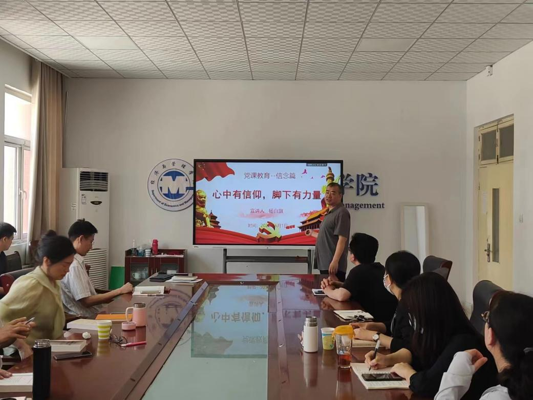 为深入学习贯彻习近平新时代中国特色社会主义思想,进一步提升党员队伍整体素质水平,增强基层党组织战斗堡垒作用,6月1日下午,我院组织开展“书记讲党课”活动,学院党委书记杨自旗以“心中有信仰,脚下有力量”为主题,为全院教师党员干部上了一堂生动的党课。