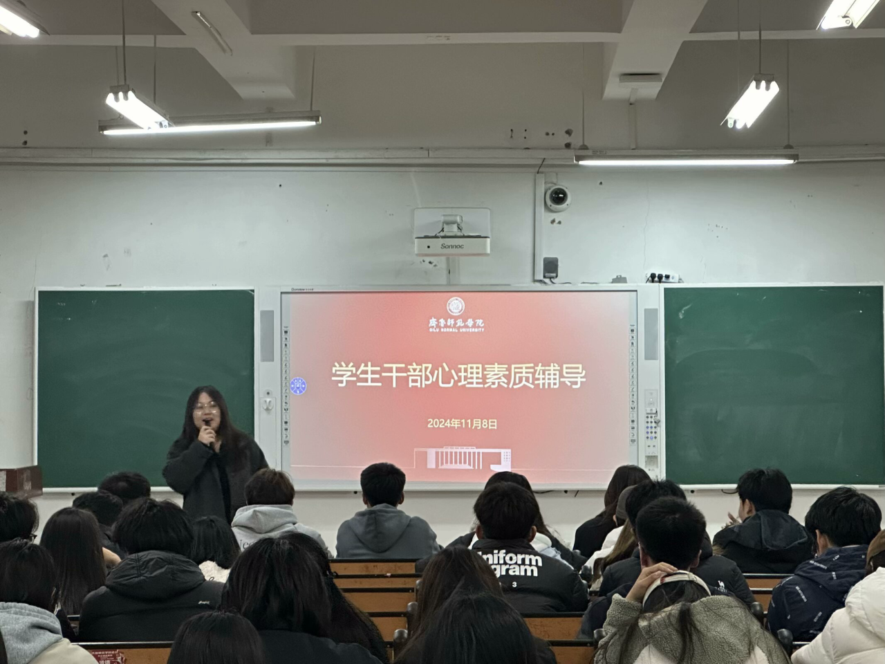 为增强学生干部的心理健康意识,提高自身心理素质,助力学生干部成长,我院于11月8日下午7点在一号教学楼b208开展了学生干部心理素质辅导培训活动,张丽娜老师主持会议,全体学生干部积极参会。