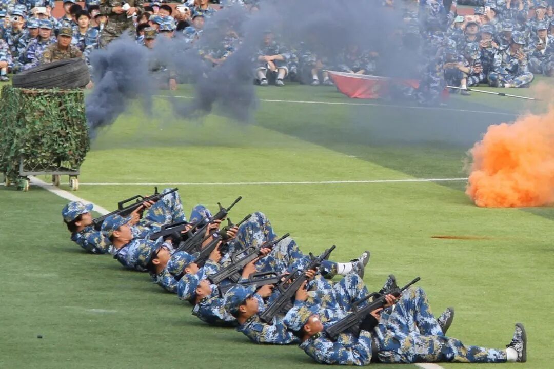 伴随着庄严的国歌,五星红旗在国旗队队员的护卫下冉冉升起,全场师生肃立行礼。升旗仪式结束后,分列式汇报随即开始,我院新生方阵率先登场,他们迈着整齐划一的步伐,喊着铿锵有力的口号,展现出经管学子严明的纪律意识与强大的团队凝聚力。随后的军训科目汇报表演,将现场气氛推向高潮。养成方队成员动作标准划一,尽显军人风范;刺杀操表演中,新生们动作刚猛,尽显少年锐气;战术方队的队员们在模拟场地中默契配合完成战术动作,尽显顽强拼搏的精神。