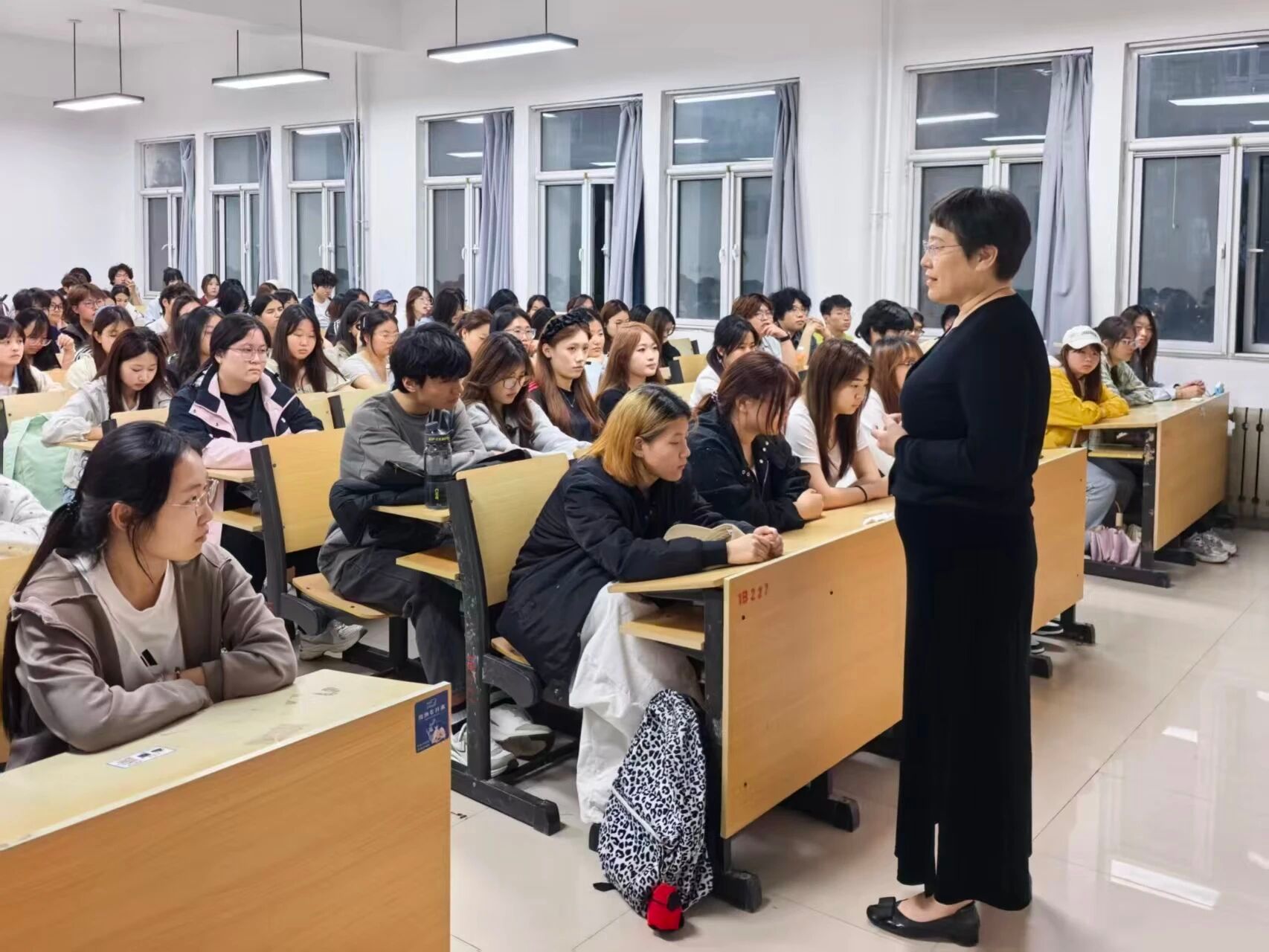 活动中,周健直面学生中普遍存在的“起点焦虑”,明确指出“起点高低并不能定义人生走向”这一观点。她表示,高考仅是人生第一次分水岭,学校的培养模式扎实厚重,同学们应秉持“我命由我不由天”的信念,自信自强。针对大学学习特点,她强调自主责任意识,提醒同学们告别依赖,明辨是非、对自己负责。同时,她分享自身早课坚持、睡前练听力的学习经历,鼓励大家克服惰性,找到适合自己的方法,用“逼自己一把”的韧劲积累成长底气。最后,在未来就业规划上,她引导大家结合自身优势找准定位,通过实践积累经验,找到属于自己的职业最优选。