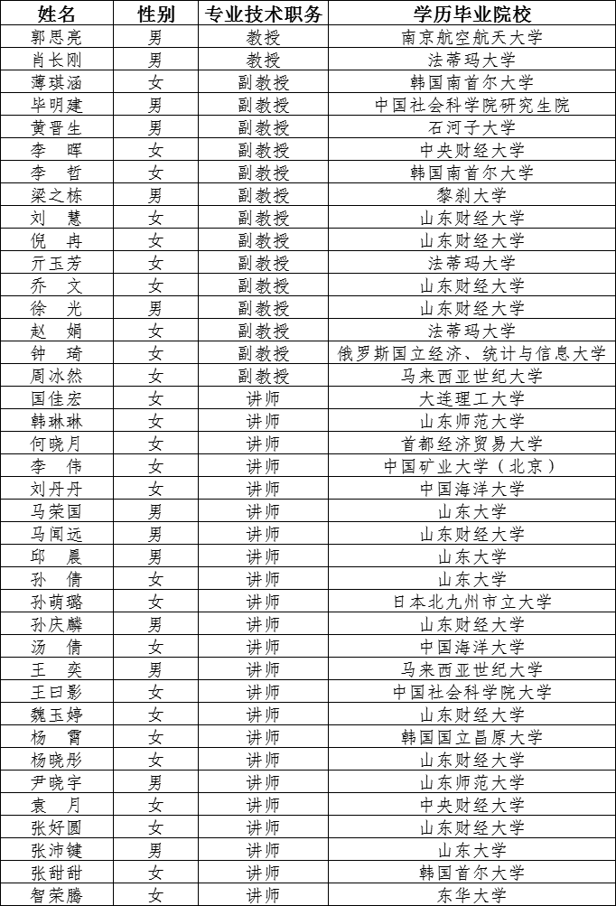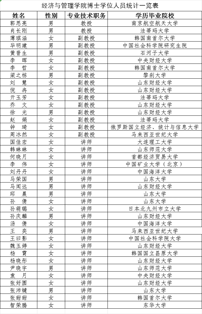 学院现有教职工52人,其中,教授4人、副教授24人;博士生导师1人、硕士生导师5人;具有博士学位和正在攻读博士学位的教师39人,具有硕士以上学位教师占98%,双师型教师占37.5%。校级教学名师2人,校级“最美教师”5人。